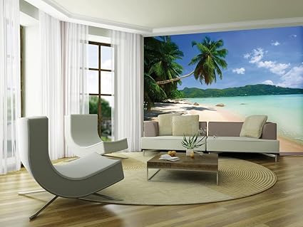 1wall Tropical Palm Beach Wall Mural 3 15 X 2 32m Wood Blue 1 X 315 X 232 Cm